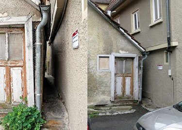 There’s not much to see in Spreuerhofstrasse, and it isn’t particularly pretty either. In order to use the street one has to squeeze past two blank walls, and when it’s raining, water drips from the gutter of an old half-timbered house on one side. Although a ton of tourists from Asia and America flock to inspect the alley, visitors aren’t necessarily encouraged to squeeze through the crack because there is a good possibility of them getting stuck. Anyone over 1.8 meters tall have to bend to pass through. Some locals are known to humorously refer to the Spreuerhofstrasse as a benchmark measurement for their diets.